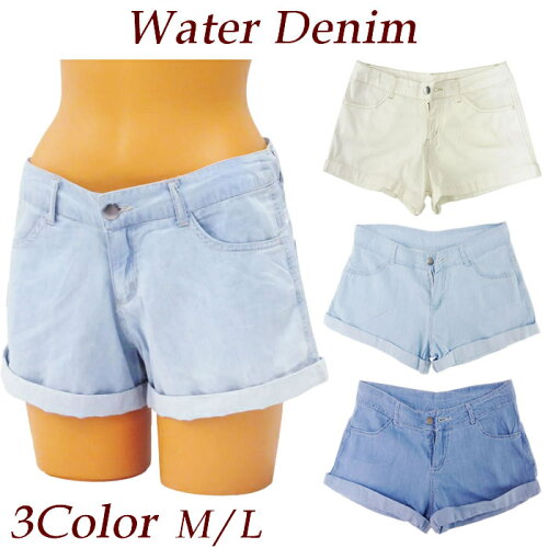 水着 レディース ビーチ パンツ 送料無料 ウォーターデニム 体型カバー ショートパンツ 水陸両用 ボードショーツ サーフパンツ 無地 オトナ女子 女性 単品 9M 11L