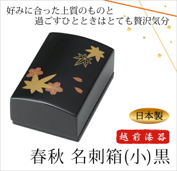 名刺入れ 名刺箱 メンズ レディース 桜 もみじ シック ギフト 越前漆器 艶 木製 上品 漆塗 手塗 うるし 漆器 高級 日本製 【送料無料】春秋 名刺箱(小) 黒 1012202