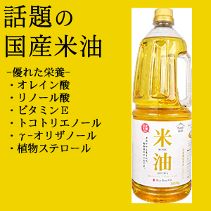 γオリザノールやトコトリエノールなどの注目成分、植物ステロールなど機能性成分が多く含み、学校給食や菓子業界でも使われる健康志向の植物油です。
